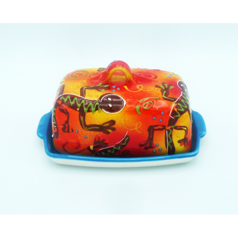 Beurrier en terre cuite pour conserver votre beurre frais plus longtemps. Ce beurrier est peint à la main, et fabriqué artisanalement.